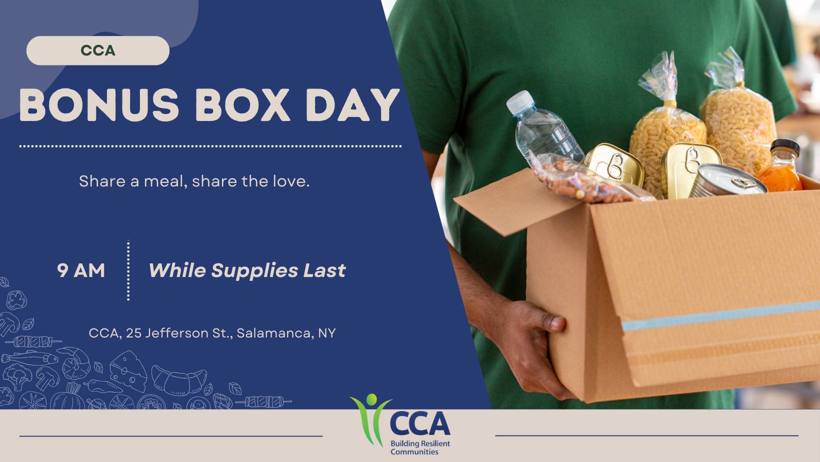 CCA’s Bonus Box Day starting at 9 am while supplies last. The focus of the boxes will be dairy products.